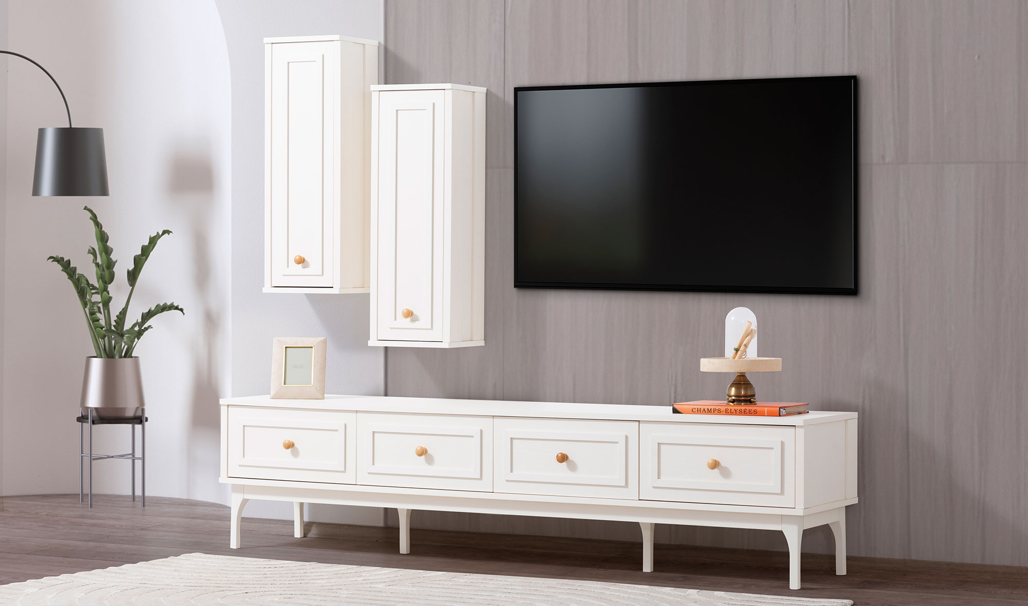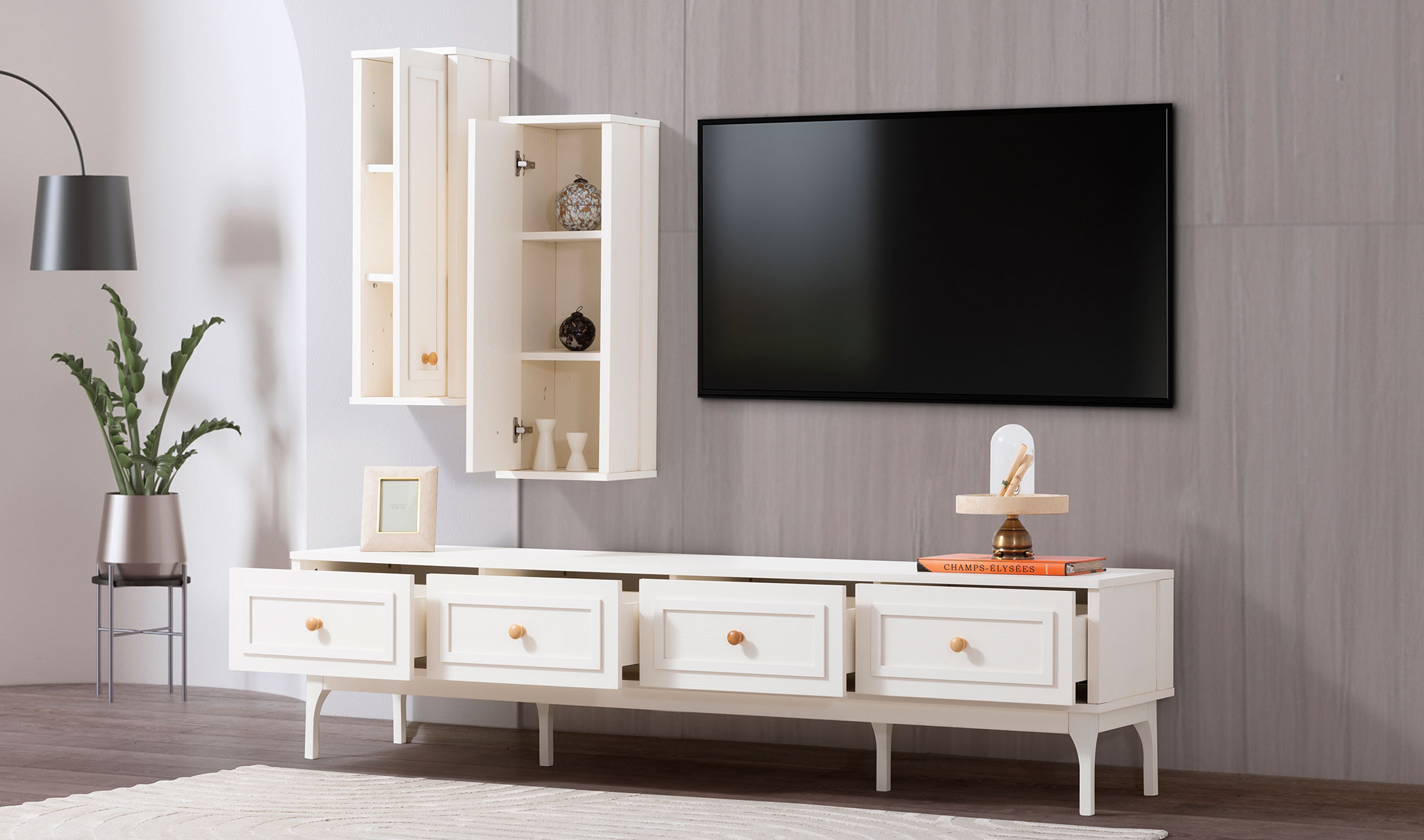 Tv unit with bottom drawers, top cabinet