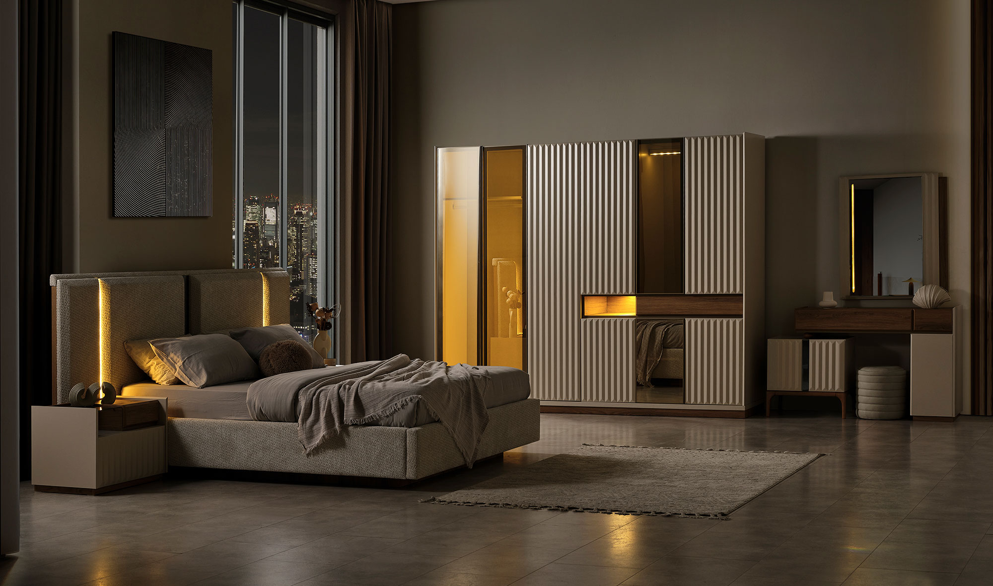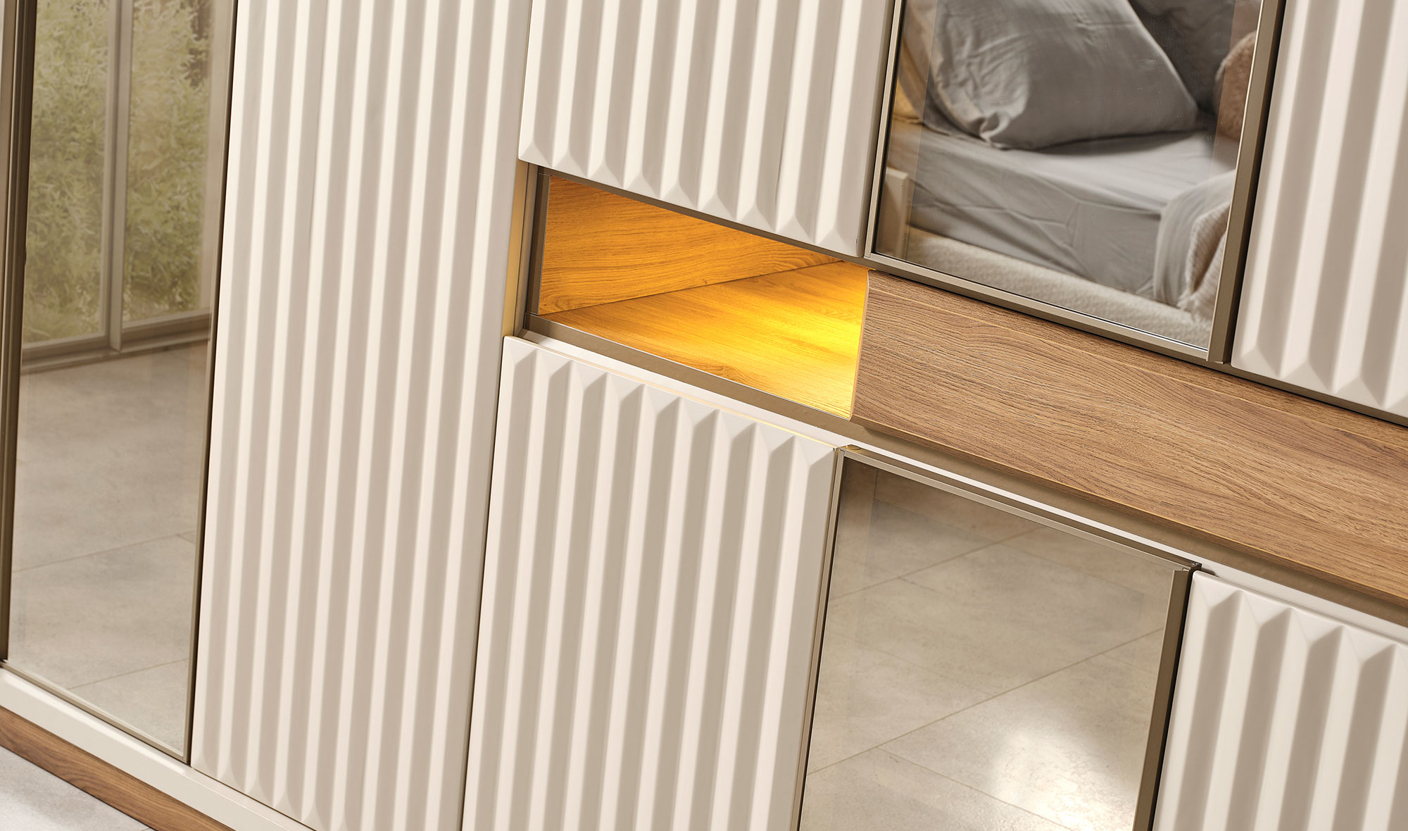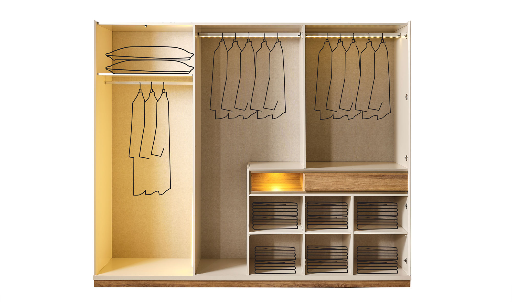 | Wardrobe Content | Hangers, shelves and drawers, led lighting |
