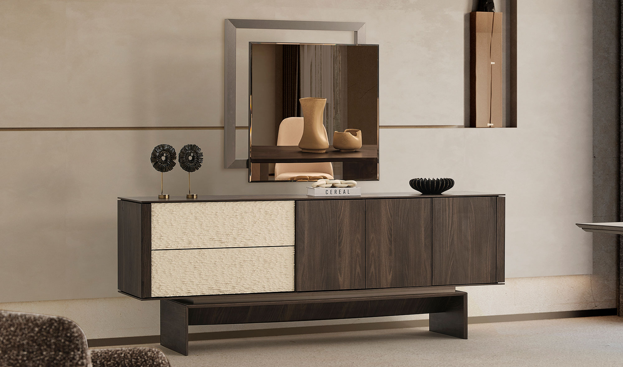 | Set Content | Console and mirror, dining table, 6 chairs |