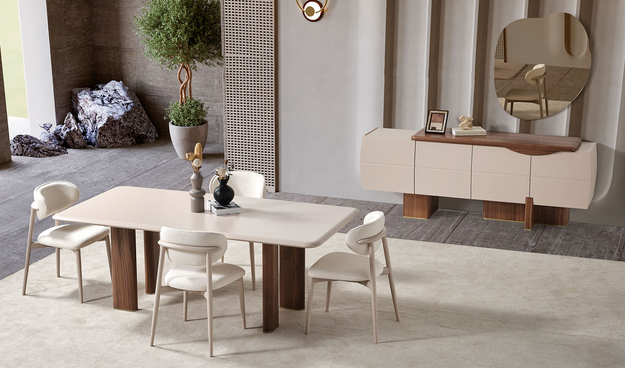 | Set Content | Console and mirror, dining table, 6 chairs |